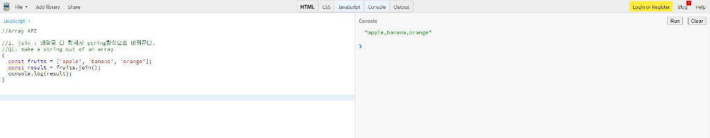 - 배열을 합쳐서 string 형식으로 바꿔준다.