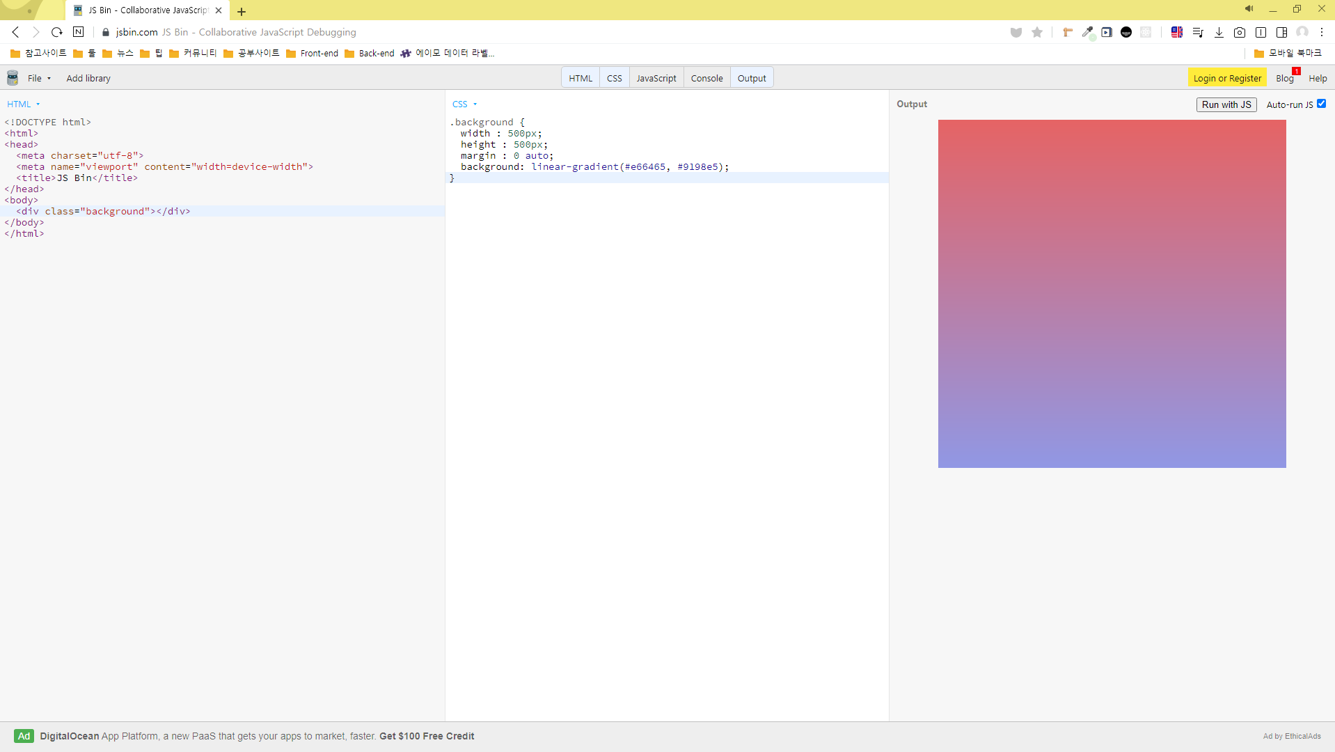 - background의 color에 gradient를 적용합니다.