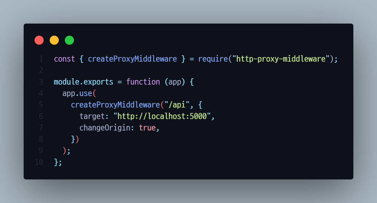 - 먼저 프록시 설정을 위해 client의 src에 setupProxy.js를 생성한다.