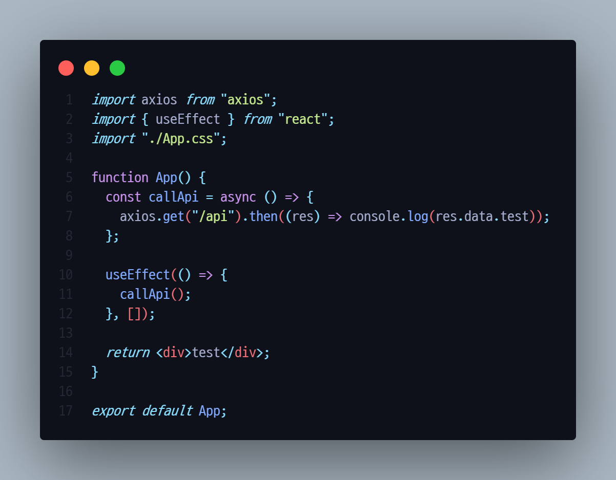 - 테스트를 위해 server/Router/test.js와 client/src/App.js의 내용을 수정한다.