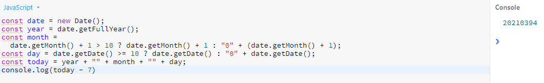 - 당일의 날짜를 구하는데에는 정상적이였지만 문제는 7일전의 날짜를 구하는 방법이였다.
