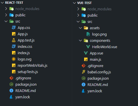 React의 프로젝트를 열어보면 아래와 같이 기본으로 구성되어 있습니다.