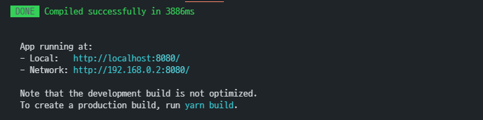 Vue는 React처럼 웹페이지가 자동적으로 열리지는 않고 결과를 확인하여 해당 localhost로 접속하여야 합니다.