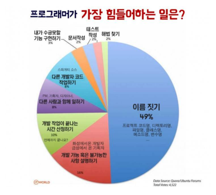 개발자들의 고민은 가지각색이겠지만 대부분의 고민은 이름 짓기가 가장 고민이 크다.